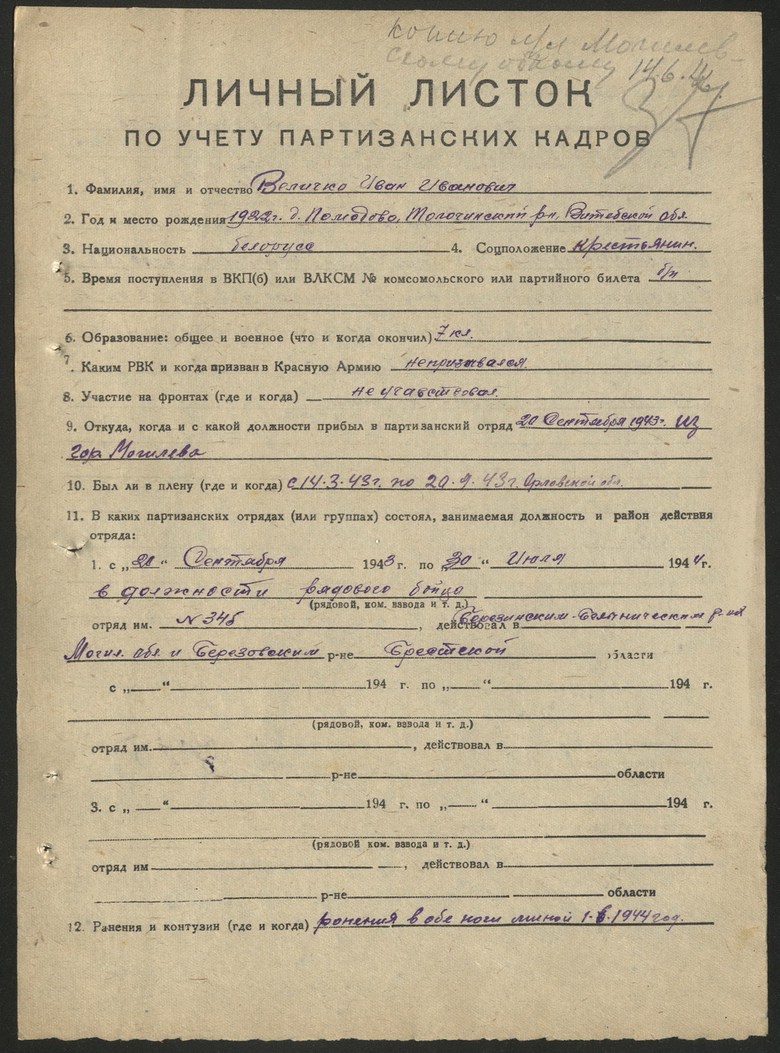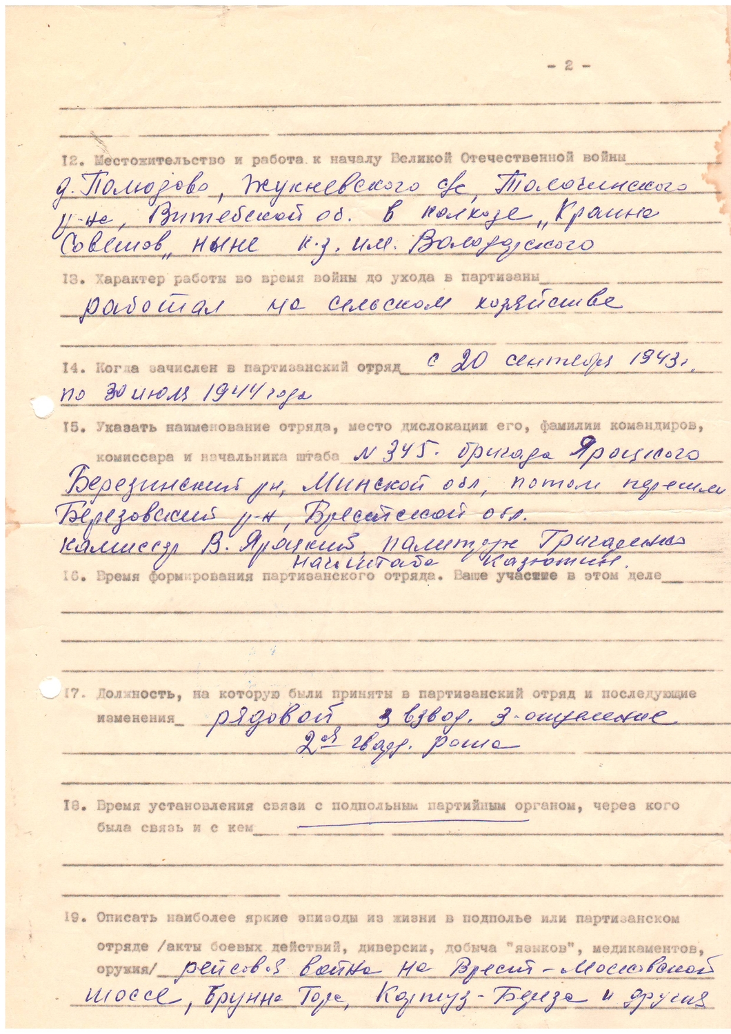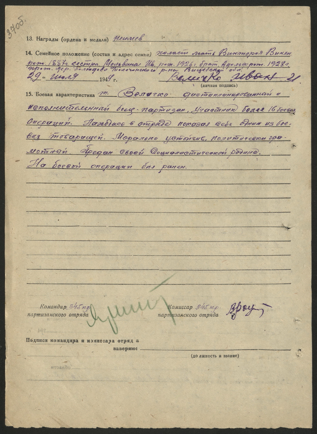 345 отдельный партизанский отряд, 2 рота, 3 взвод, 3 отделение |